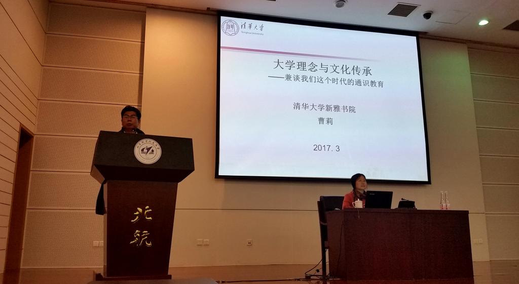 在本次报告会中,曹莉教授主要讲述了四个主题:一、大学理念与大学变迁。二、大学使命与文化传承。三、人文教育与通识教育。四、清华大学新雅书院。在第一个主题中,曹莉教授介绍了“现代大学”的定义与起源、发展过程,并对传统大学与现代大学做出了比较。在第二个主题中,曹莉教授总结了世界各国大学发展道路,介绍了大学在文化传承上的作用,并提到了中国大学应中西并举,既要深入了解并对民族文化有温情与敬意和自知之明,又要认真学习西方,全面理解和认识人类的永恒性和本民族的特殊性,对过去的文化做出新的诠释,并贡献于未来,将马克思主义与中国革命实践的成功结合成果发扬光大。在第三个主题中,曹莉教授重点辨识了“人文主义教育”“人文学科的教育(人文专业教育)”和“通识教育(素质教育意义上的人文教育)”三者之间的关系,提出了中国大学在人才培养工作存在的深层次问题。在第四个主题中,曹莉教授介绍了清华大学新雅书院及相关改革举措,点明了清华大学通识教育中曾经存在的问题,分享了清华大学的经验与成效。