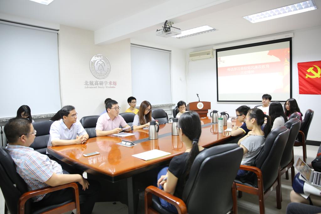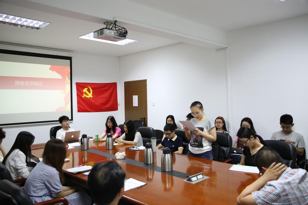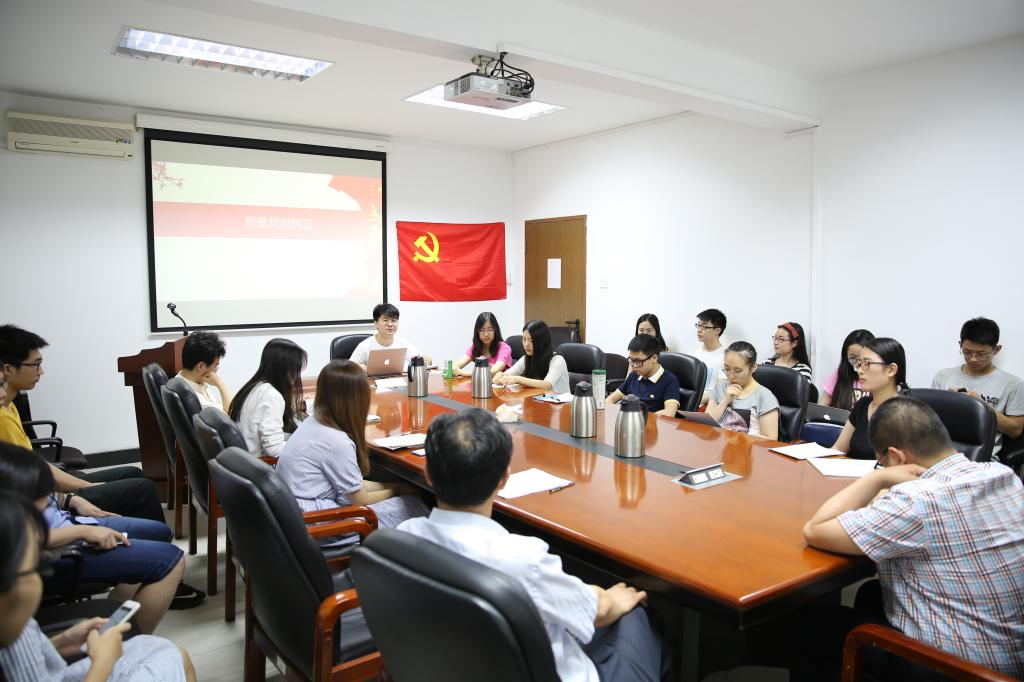 6月8日晚,高研院直属党支部在西办公楼高研学术坊召开支部大会,参加此次会议的有高研院蔡劲松、教师党员代表田飞龙、段颀、专职辅导员王佳发以及直属党支部24名学生党员和预备党员,会议由专职辅导员王佳发老师主持,对袁久华等5名预备党员转为中共正式党员的申请进行讨论和表决。