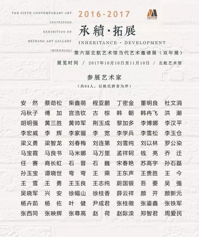 2017年10月10日,“承续·拓展”第六届北航艺术馆当代艺术邀请展(双年展)正式拉开帷幕。当天下午,来自全国各地的参展艺术家代表莅临展览现场,共同探讨当代学院艺术的发展流变、创作趋向与文化价值。展览共邀请了80多位艺术家的作品参展,包括水墨、油画、版画、雕塑、装置、综合材料等多个类别,向社会公众呈献了一场具有学术性、独创性、体现当代艺术发展态势的学院艺术盛宴。