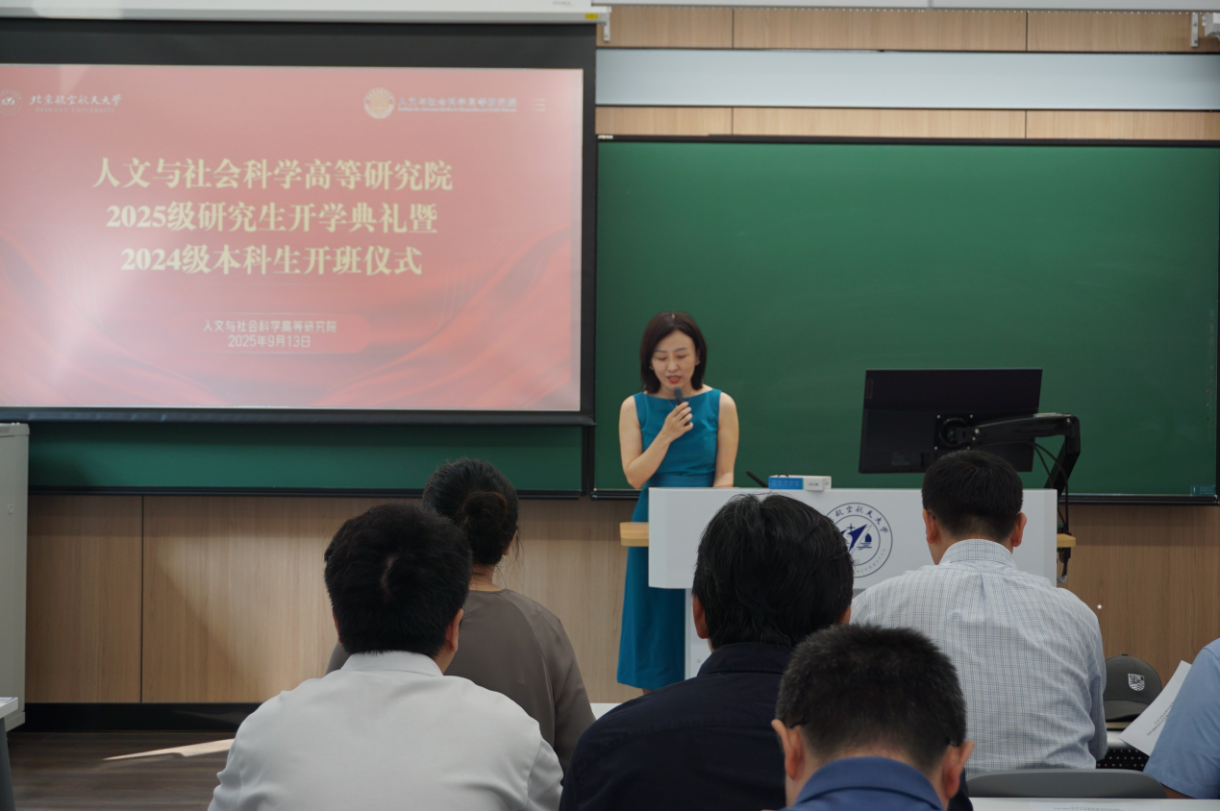 新生代表2025级哲学专业硕士研究生张鼎同学结合自身经历表达了对在高研院继续深造的期待。她表示,在高研院交叉特色的培养体系下,将以“德才兼备、知行合一”为准则,既厚植人文学术底蕴,又践行空天报国情怀,不仅明确自身肩负的学术使命,更将“讲好中国故事”的时代使命融入成长征程。