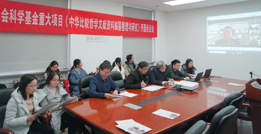 2020年11月29日上午,北航人文与社会科学高等研究院张耀南教授担任首席专家的2019年度国家社科基金重大项目《中华比较哲学文献资料编纂整理与研究》开题论证会在图书馆西配楼305高研学术坊顺利举办。开题论证会采用线上、线下相结合的方式举行。