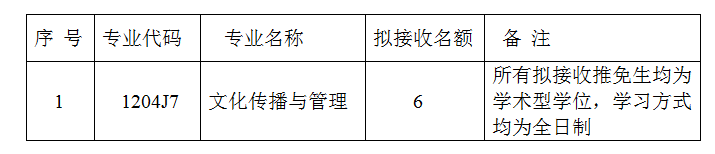 “文化传播与管理”是我校自主设置的新兴交叉学科。本专业主要在“公共管理”一级学科下,着力培养具有跨学科、多领域交叉视野,具有文化研究与文化管理专门知识,在公共文化建设及传播、文化管理与策划、文化艺术教育等领域的创新应用型高层次人才。